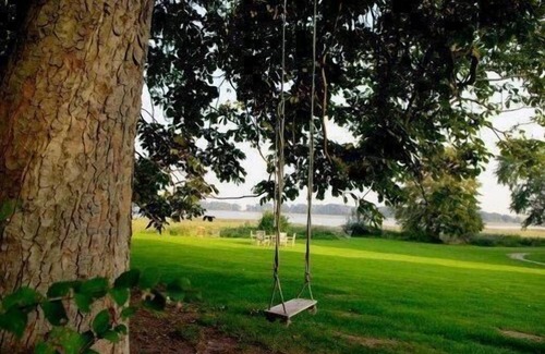 The surroundings and the site, located by the nature reserve, offer a range of recreational activities. You can enjoy relaxing and the sunshine in the 10,000m2 garden right by the water, with plenty of space for children to play. There is also an 80m² sun terrace with deckchairs and tables. There is a little swimming and boat jetty and a ladder leading down into the water, right by the site. There are cosy and secluded grill areas in idyllic sports around the garden.
