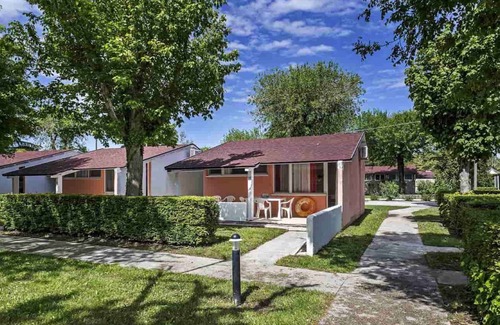 5 stars, 547 beds, reception (24 hour service, safe), 2 restaurants, pizzeria, bar, pool bar, common room, internet (WLAN) and children's playroom. The central safe can be used for a fee. LocationCaorle, district Caorle. The holiday apartement is located on a 32000 sqm garden plot with flowers, bushes and trees. The holiday center covers an area of 320,000 square meters and has a private beach over 500 meters long. Inside there are 578 residential units in the center of a large green oasis as well as large shady parking spaces. It has a