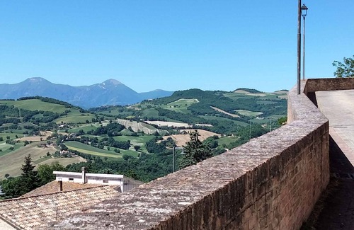 The holiday apartment is located in an apartment house built in 1700, was renovated in 2000 and is furnished in a functional style. The property is located in the town centre, near the old town. Also due to the view over the mountains from the property and its quiet location the domicile is popular.Holiday resort6 accommodations. LocationFratte Rosa, 450 m above sea level. The landlord does not live in the house or on the property. Access is directly from the main road (asphalted). THERE IS NO RESERVED PARKING, but you can park on the street in front of the house (if you find a spot) or on the nearby square. Specialcentral heating (gas).Facilities: baby cot, high chair, iron and washing machine. TV reception takes place via antenna. Dogsallowed, EUR 6.00/pet per day. DistancesShopping 50 m, restaurant 20 m, town center 10 m. airport in Fano 30 km. Fratte Rosa: bank 100 m and pharmacy 50 m. Main road 10 m. Children's playground 20 m. In summer: Bathing possibility 26 km in Marotta (beach 30 km in Fano featuring sand). Fano: water sports, boat rental, boat launch each 30 km. dog beach 32 km. tennis in Fratte Rosa 500 m. In winter: Ski lift 30 km in monte Nerone. DivisionHoliday apartment, 2 floors, 5 rooms (including 3 bedrooms), 80 sqm, in total 5 beds, plus 1 baby cot. RoomThe entrance to your holiday apartment is located on the 1st floor