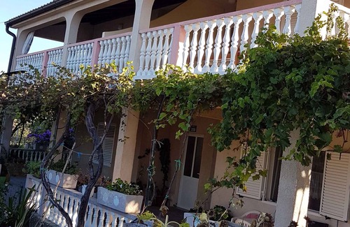 The holiday apartment is located in a detached single-family home, was renovated in 2022 and is furnished in a modern style. The property is located on a farm, on the outskirts. Also due to the view over a panorama from the property and its quiet and sunny hillside location the domicile is popular. Available for use: children's playground, swing, sandpit, garden shower, barbecue facilities and courtyard.LocationLopar. The holiday apartement is located on a farm, on a 1500 sqm open garden plot with meadow, flowers and trees. View of the sea in the distance Access is via a side road (asphalted). Parking (for 5 cars) is available on the property. Specialair conditioning.Facilities: children's toys, high chair, internet access (WLAN) and iron. TV reception takes place via antenna, satellite. The accommodation is set up allergy-free.For your safety, the accommodation is equipped with first aid kid.Hygiene measures: final cleaning with sanitisation. Dogsallowed, EUR 10.00/pet per day. DistancesShopping 500 m, restaurant 700 m, town center 700 m. For a relaxing holiday, a car is not necessary. The nearest public transport stop is 500 m away. airport in Fiume 80 km. Lopar: pharmacy 400 m and doctor 700 m. sauna, cinema, bank each 12 km in Rab. Children's playground 500 m. In summer: Adriatic coast 800 m in Lopar (beach 800 m in Lopar featuring sand and gravel). Lopar: tennis, mini golf each 700 m. dog beach, diving, water sports, boat rental, boat launch each 800 m. DivisionHoliday apartment, 1 floor, 2 rooms (including 1 bedroom), 40 sqm, in total 4 beds (including 2 cots), on request additionally 1 child up to 2 years in a baby cot. RoomThe entrance to your holiday apartment is located on the 1st floor