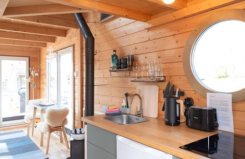 The kitchenette is equipped with a sink, an induction hob (two hotplates), a fridge with freezer compartment and all the kitchen utensils you need for easy cooking. There is a porcelain filter and filter papers for making coffee.