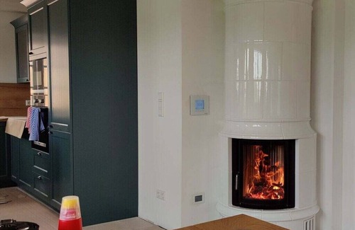 Enjoy the magnificent view of the island from the over 40 square meter open-plan living and dining area. Or step outside into nature through the large veranda door. The perfectly equipped kitchen and spacious dining area turn every meal into a small celebration. Even in bad weather, the Smart TV and fast internet ensure that nothing will be boring. In the colder months, relax in the in-house sauna or be pampered by the cozy warmth of the magnificent tiled stove. Underfloor heating throughout the house ensures even warmth. The two bedrooms on the upper floor have en-suite bathrooms, while one bedroom is located on the ground floor, which is suitable for seniors, with the bathroom directly opposite. Luxurious box spring beds ensure a good night's sleep.