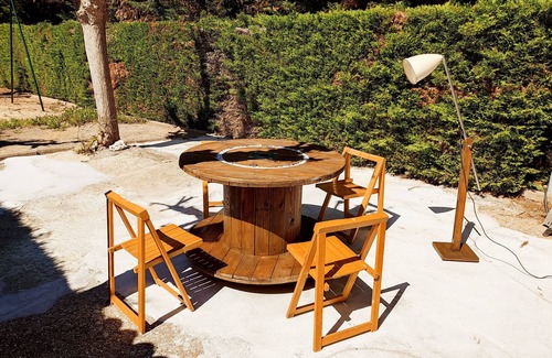 The holiday home La Zanja with step-free access and interior in Villabáñez is the perfect accommodation for a stress-free holiday with your loved ones. The 2-storey property consists of a living room, a fully-equipped kitchen, 3 bedrooms and 3 bathrooms and can therefore accommodate 11 people. Additional amenities include high-speed Wi-Fi (suitable for video calls) with a dedicated workspace for home office, a smart TV with streaming services, a fan, a washing machine as well as beach/pool towels. Furthermore, a table tennis table is available on the property. A baby cot is also available. This accommodation does not offer: air conditioning. Enjoy the ultimate vacation experience in this stunning property. The private outdoor area features a pool, a garden, open and covered terraces, a barbecue, a playground, and an outdoor shower.