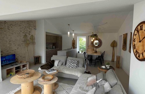 Located in Saint Denis d'Oléron, Villa L'hirondelle is a spacious 117 m² holiday home, ideal for families and comfortably accommodating up to 8 people. You will find 4 bedrooms and 3 bathrooms, as well as a large living area with a fully equipped open kitchen and a bay window overlooking the garden. The property offers Wi-Fi suitable for video calls, a television, a washing machine, a dedicated workspace, a baby cot and a high chair for your comfort.
