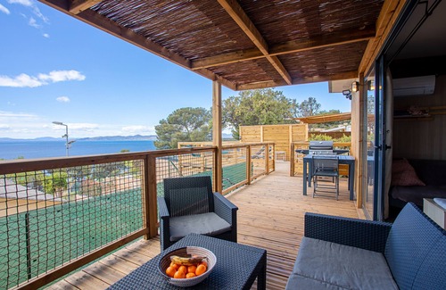 In Saint-Raphaël, the holiday home "Lodge Vue Mer" boasts an excellent location close to the beach. The 35 m² property consists of a living room, a fully-equipped kitchen with a dishwasher, 2 bedrooms and 1 bathroom as well as an additional toilet and can therefore accommodate 4 people. Additional amenities include Wi-Fi, a TV as well as air conditioning.