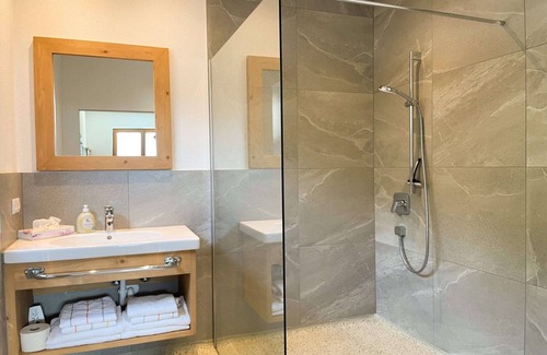 The group house has been lovingly renovated and offers 8 spacious bedrooms, each with its own bathroom, providing comfort and privacy for guests. Whether you're looking to relax or seek adventure, the Zillertal offers a wealth of outdoor activities, and this property is the perfect base for both. Enjoy the fresh mountain air, the stunning panorama, and unwind in the peaceful surroundings, making for a truly relaxing stay. On the ground floor, you'll find 2 bedrooms equipped with double beds, single beds, TVs, and private bathrooms. The spacious common room includes 3 large tables, chairs, and benches, providing ample space for all guests to gather and relax. The well-equipped kitchen features 2 refrigerators, a freezer, an oven, an electric stove, and a gastro dishwasher, ensuring you have everything needed for cooking during your stay. A small terrace offers a lovely view of the Zillertal Arena, the area's largest ski resort. The first floor offers 6 additional bedrooms, with 3 featuring double beds, sinks, showers, and private bathrooms, and 3 with double beds, a single bed, and their own bathrooms. This layout ensures there are no long waits for bathroom access. A balcony on the first floor provides yet another breathtaking view of Mayerhofen, Zell am Ziller, and the Zillertal Arena. The house also boasts a large terrace with seating, a grill, and beautiful views, making it ideal for outdoor gatherings. The property offers 10 parking spaces and modern amenities such as satellite TV, Wi-Fi, and garden furniture. Whether you visit in winter or summer, the Zillertal offers a wide range of activities from skiing and snowboarding to hiking and biking, making it an all-season destination.