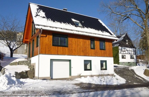 New holiday home in close proximity to the ski slopes, amusement park and hiking routes for up to 7 people with 135m² of living space. The house is suitable for asthmatics and allergy sufferers; the ground floor is barrier-free. The facilities include a living room with a fireplace, satellite TV, VD player, stereo CD and radio system. Telephone and internet access free of charge, a fully equipped kitchen as well as a single and 3 double rooms that can be completely darkened and equipped with insect screens. There is a sofa bed in the family bedroom. There are 2 bathrooms with shower and toilet, one of which is wheelchair accessible. Large bathroom with bath and shower and two individual sinks. Enjoy your vacation on the terrace (facing west) with a fireplace and barbecue facilities.