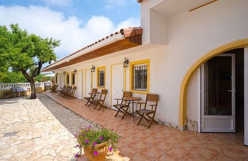 ED Refnr. 2769076 New to our range: We have recently added this accommodation. The following description is a first draft, which is still awaiting revision. Please contact our Customer Service if it contains any gaps. Comfortable country-style finca with five bedrooms, max. ten persons. Finca Bilou is a comfortable countrystyle finca and located two km (approximately 62 miles) outside the authentic village of Aigües, only a 12-minute drive from the beautiful beach of El Campello, a short 20-minute drive from the bustling city of Alicante with its large and spacious promenade and only a 30-minute drive from Benidorm, known for its active nightlife scene and its beautiful beaches. For the active guests among us, scenic bicycle routes and hiking trails are easily accessible from Finca Bilou’s location. Golf enthusiasts can visit golf resort Bonalba, which is which is located nearby. We are looking forward to welcome you in our beautiful Finca. Finca Bilou offers five contemporary but cozy style double rooms, each equipped with a private bathroom with shampoo & shower gel facilities as well as a hairdryer, coffee/ tea facilities, ceiling fan, for the colder winter evenings, the rooms are equipped with central heating, free WIFI. All rooms connect with the outdoor patio area, which offers great views of the surrounding mountains. Finca Bilou offers a perfect retreat for individual guests and groups or families who want to enjoy some tranquility, relax and use Finca Bilou’s great amenities, while at the same time be in close proximity to experience everything this beautiful area has to offer. Free Wi-Fi is available in the guestrooms as well as in the general facilities. Parking on site is free. This spacious guesthouse features a large common area living room with a flat-screen TV (with cable TV) and a dining room with a separate toilet and the 6th bathroom. The large and profesional stainless steel kitchen is equipped with good appliances including an oven, gas stove, fridge, dishwasher and microwave. Outside there is a bar with a BBQ pit which lends itself perfectly for outdoor living. The beautiful pool and outdoor jacuzzi ( heated in the early and late season ) are both surrounded by lush gardens where you can enjoy reading a great book. Guests can also enjoy the spectacular panoramic views from the big sunroof terrace, which can also be used for relaxation or simply for sun bathing. Outdoor patio area with several seating arrangements with embrellas, BBQ, private pool with built-in jacuzzi (heated in the early and late season), roofterras with sunbeds and under the covered part some comfortable garden seats, garden with almond trees, olive tree, fig trees, pomegranate tree, palms and various plants, parking possibility for up to 5 cars, plot is detached and fenced. The owners of Finca Bilou, who live next door to the Finca, will meet you once a week on the property to maintain the pool and to take care of the patio plants. This is in your own interests as well as for future guests so that you all can enjoy it at the fullest. Of course, your privacy will be taken into account and we will only do this maintenance work mainly if you are absent or at a time we both agree on! Rest of the garden is equipped with automatic irrigation system. We are proud of our beautiful accommodation and do also wish that our future guests, friends and family can enjoy our hospitality and service hence maintenance is required. Where would you rather spend more time; on a bicycle, the golf course, the tennis court, the paddle court, in a museum or on the beach? Active, relaxed or cultural? Finca Bilou is only a 10-minute drive from all of your desired activities. This makes us a perfect home base to start your (combination) holiday. Licence number for tourism leasing: VT-439373-A Features of the property: Swimming pool depth: 200 m Outside area: Fenced; Garden available; Grill; Heated swimming pool; Outdoor shower; Parking spaces: 1; Private swimming pool; Roof terrace; Swimming pool length: 500 m; Swimming pool width: 300 m; Terrace; House information: 2nd double bed; 2nd single bed; Bathrooms: 6; Bedroom; Bicycle rental: 12,00 km; Detached building; Finca; Property area: 2000 m²; Year of construction: 1990; Living area: Cable-tv; CD-Player; DVD-Player; Iron; Safe; Bath/WC: Hairdryers; Shower; Toilet; Kitchen: Coffee machine; Dishwasher; Freezer; Fridge; Gas stove; Microwave; Oven; Toaster; Water boiler; Other: Baby chair; Games for children; Heating; No youth groups; Owner lives on the property; Vacuum cleaner; Ventilator; Washing machine; Wifi all-inclusive package; Distances (linear, approx.): Distance Bar / Club: 12,00 km; Distance to airport: 35,00 km; Distance to basketball: 2,00 km; Distance to beach: 14,00 km; Distance to cafés/ restaurants: 2,00 km; Distance to food market: 2,00 km; Distance to golfcourt: 15,00 km; Distance to next public transport stop: 12,00 km; Distance to port: 14,00 km; Distance to sand beach: 14,00 km; Distance to swimming pool: 2,00 km; Distance to tennis court: 15,00 km; Distance to the sea: 14,00 km; Distance to water sports: 14,00 km; Distance to water: 14,00 km; Jet ski rental: 30,00 km; Next location: 2,00 km; Riding facilities: 15,00 km; Surfboard rental: 15,00 km; Extra costs: - Cot for adults: according to consumption (optional). - Cot for children: according to consumption (optional). - Grillplatz: Kosten in Höhe von 15 EUR (optional). - Bügeleisen: im Preis enthalten . - Energiekosten: im Preis enthalten . - Geschirrtücher: im Preis enthalten . - Parking facilities: included in price . - Towels: included in price . - Internet: included in price . - Bed linen: included in price . - Final cleaning: once per object Costs amounting to 150 EUR (Mandatory). - Poolhandtuch: pro Person und Woche Kosten in Höhe von 5 EUR (optional). Additional information: - Property area: 2000 m²