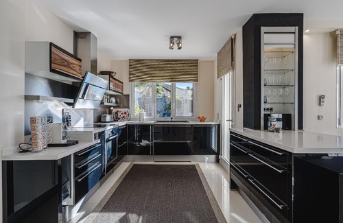 The modern, light-flooded interior of the villa offers breathtaking panoramic views of the entire south-west coast of Tenerife and La Gomera from almost every room. Bright, polished marble floors, an ultra-modern open-plan fitted kitchen with all amenities, an open fireplace, WiFi and satellite TV, a Sonos sound system, large panoramic terraces and 3 spacious bedrooms with 2 bathrooms, one of which has a Jacuzzi, leave nothing to be desired. The kitchen is very modern and fully equipped. A fully automatic coffee machine, a Nespresso machine and a blender are just some of the many amenities.