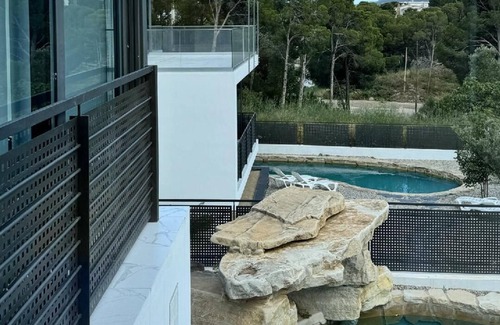 An exclusive house with capacity for 6 people. Guests have at their disposal a kitchen area, made with the best quality materials and fully equipped with everything necessary to prepare any dish and satisfy all tastes. Living room with a comfortable double sofa and TV with Smart TV, so that even when you are on holiday, you can continue watching your favourite series and programmes. 3 bedrooms. 2 bathrooms and 2 toilets. There is air conditioning, washing machine and dishwasher. This house has a stunning swimming pool and garden furniture. This is a favourite place for guests to sunbathe on one of the sun loungers or disconnect from civilisation. The villa offers guests several relaxation areas both inside and outside the house. With private covered parking.
