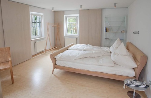 The house provides an ample ca. 300m² of living space for a maximum of 23 people. There is a generous kitchen on the ground floor for self-catering, equipped with an oven, fridge with freezer compartment, gas stove, toaster, kettle and coffee machine. You will find a separately located pizza oven. The house has eleven bedrooms, a breakfast room, seminar rooms, a library, common rooms, an office room and four bathrooms. You need to bring your own hairdryer if required. There is a fitness area with a training bench and dumbbells, as well as a Finnish sauna, an infrared sauna and a washing machine for use free of charge. There is a Viennese grand piano in the seminar room. The whole house has heating and free Wi-Fi.