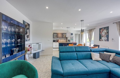 The interior of the house is decorated with modern furniture of a high standard, creating a space that is both elegant and comfortable. The spacious living room includes a comfortable sofa, ideal for relaxing with a book or watching TV. This area is naturally connected to the fully equipped kitchen with the most modern appliances, which enables easy meal preparation. The living room opens onto a large terrace with access to the private pool. The terrace is equipped with comfortable deckchairs and an outdoor dining area. The house has two spacious bedrooms, each with comfortable beds and modern bathrooms. The house is ideal for families with children, thanks to the safe and peaceful surroundings. Your pets are welcome with prior agreement and an additional fee. ( max 1 ) The yard is not completely fenced. It is only a few minutes' drive from the center of Buzet, where you can find various shops, restaurants and cultural sights. This luxury house represents the perfect combination of modern design, comfort and natural surroundings, ensuring an unforgettable vacation for all guests. Book your stay and enjoy all the charms of Istria!