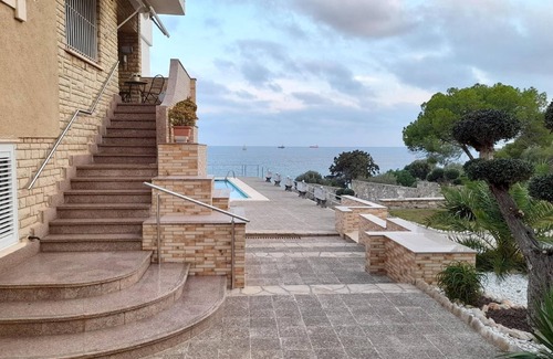 It is a house with ground floor and first floor. The first floor is rented, with 170 m2 of surface, in front of the sea, in a very quiet area. It is fifteen minutes walking to Tarragona city centre and bus stop at 1 minute. It shares swimming pool of 105 m2 and garden of 2.800 m2 with other two houses of the same characteristics. It has a picnic area of exclusive use at the foot of the swimming pool, with its big barbecue. Inside the house there is a large kitchen-dining room, a reading room with television and a large living room with mini bar and television, all with views of the sea, two double bedrooms, a single bedroom and a full bathroom, with the possibility of a second full bathroom. It is ideal for those who are looking for rest and tranquillity. From the house you can hear the hum of the sea and watch the sunrise and sunset with the sea as a protagonist.Registration: HUTT-013493