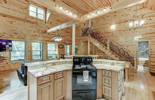 Holiday is designed to make your vacation great, so you’ll appreciate the granite countertops, high-end cabinets, custom tile, hardwood floors, and much more. Holiday is nestled in a private wooded area overlooking a babbling creek, so enjoy a peaceful walk along the trail in back and then relax indoors in an amazing heated spa bath. Let Holiday make your next special occasion into a date to remember.