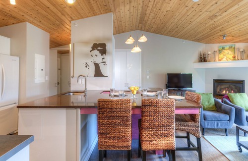 This exceptional townhouse situated in the Meadow Village of Big Sky is loaded with high-end finishes and features. This 1100 square feet unit is professionally decorated and has a beautiful kitchen with an open floor plan. It features 2 bedrooms and 2 baths, a private balcony, hot tub and more. This townhouse features a modern kitchen with high-end appliances, tile stone countertops and every convenience you might need. This fully equipped kitchen is the perfect place to cook a gourmet meal or enjoy take-out from one of Big Sky's fabulous nearby restaurants. Here you will also find a beautiful custom designed dining area with seating for five people!
