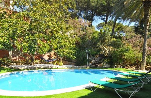 HUTB-015065-34 - Villa Azulina is a beautiful private villa located in a urbanization which is calm and great for a family in Arenys de Munt. It has a capacity for 8 people. It has wonderful views to the sea and mountains offering all the comforts and services you need. It has an incredible and spacious garden fully equipped with a beautiful stone barbecue and furniture that will allow you to relax, have family meals or enjoy the private pool on the hot days of your vacation. The property also offers a massive garage with a capacity for a 3 cars to park your vehicles with privacy, security and comfort. The villa also has air conditioning, the villa have magnificent air currents in all the rooms that will make your stay comfortable and pleasant without the need for air-conditioning.