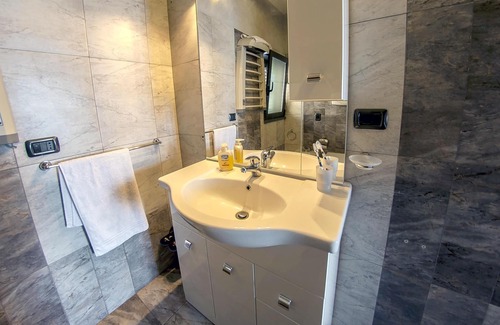 The apartment has 2 comfortable bedrooms, 1 including a double bed and a private bathroom with toilet and a shower and 1 including a bunk bed and a private bathroom with a shower and toilet.