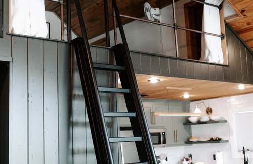 River + Mountains: Take some time to enjoy the tranquil beauty of nature with a stay at The HoneyBee. Lounge by Caddo River and take in stunning views from your private deck — complete with a hammock, a hanging egg chair, two rocking chairs, and a dining set for four! This cozy space has ample sleeping arrangements; one King Bedroom with a Sleep Number Mattress, plus a Queen Bed in the loft promises optimal rest & relaxation. Inside you’ll find everything necessary for cooking up delicious meals — cookware, bakeware (we've got muffin tins!), utensils...even waffle-maker for breakfast feasts! And we didn't forget about outdoor activities: head down to the river or spend quality family time around our firepit before playing on the bungee swing nestled among trees. Get ready…its luxury living like never before!