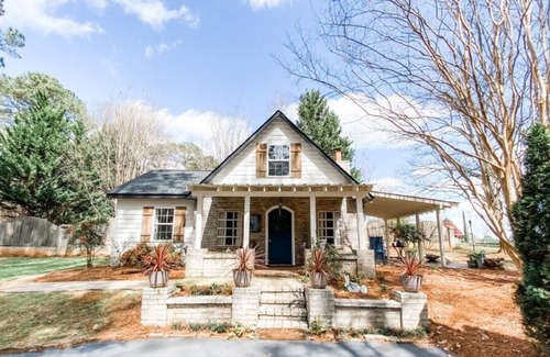 The Cottage at Sanctuaire Atelier is a romantic, European style retreat that features an eclectic mix of antiques and boho accents. Nestled on 12 acres, you can cozy up by the fireplace,stargaze, read in the rocking chairs on the patio, work comfortably in a peaceful oasis, or take nature walks. Located in central GA 1 hour South of Atlanta, 45 min north of Macon, and just 30 min. from many towns with southern charm. Work with our host in creating a unique experience customized for your trip!