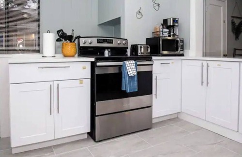 The kitchen is stocked and ready to allow you to prepare some simple meals.
