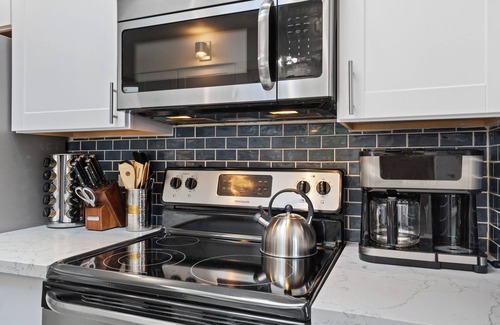 The fully equipped kitchen comprises of ample cabinetry, spacious countertops, and modern appliances that allow for effortless and fun preparation of your favorite meals.