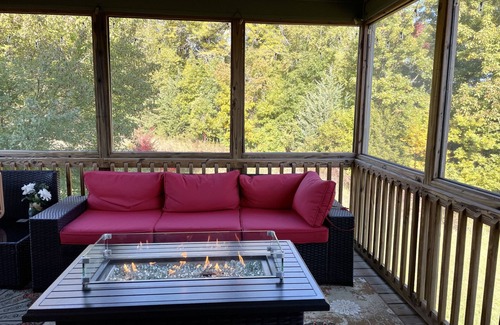 The backyard has a Backyard has fire pit and outdoor seating. Also a screened in porch to enjoy the sounds of nature, bird watch. Enjoy the "Dark Sky" neighborhood