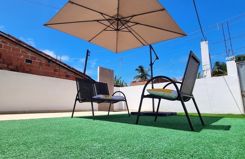 Super nice house in the center of Boipeba Island. Air Conditioning in all rooms and a spacious private front area with synthetic grass. Wifi available. Just 400 meters from the Main Square and 800 meters from the Beach!