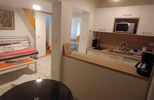 (Text automatically translated) Ideally located house with direct access to the beach by stairs within 15m. Idyllic setting for a dream vacation in couple or famille.Orienté South / Est.Grand bed 160x200 (possibility two single beds). Terrace and garden. Ground floor with kitchen, living room and bathroom with shower and toilet, staircase for access to the room with a balcony overlooking the sea (FOR 4 PEOPLE MAX) POSSIBILITY 7 PEOPLE WITH A COMFORTABLE COTTAGE REFITTED 20M) The location located at Ile Tudy village of 700 inhabitants with marina old. Sandy beach of 5km from Ile Tudy Sainte Marine. Very light facing south-east magnificent view of the sunrise and sunset.