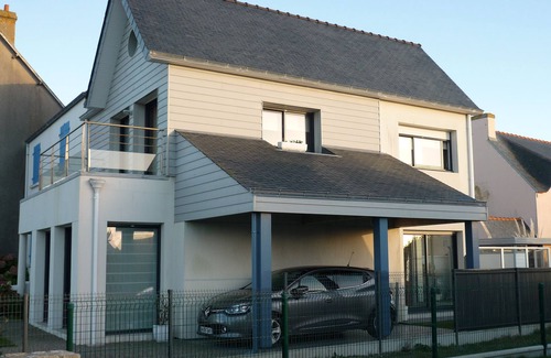 Ideally situated on the seafront overlooking the bay Audierne quietly between the port of St Guénolé beach and Pors Carn, modern comfort clos.Vous garden can take your meals and enjoy the sun on the terrace south of sight (store banne electric front vent, garden furniture, sun loungers, gas barbecue) -> sea view from the side. In front, the balcony is accessible from the mezzanine and main bedroom.