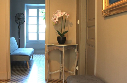 The house dates from 1813, but was renovated in 2014, respecting the authentic elements (exposed stones, tomettes, old decorative tiles, ...). There is a large terrace, a swimming pool (9 x 4 m) and a large garden (1300m2), planted with trees and surrounded by ancient walls.