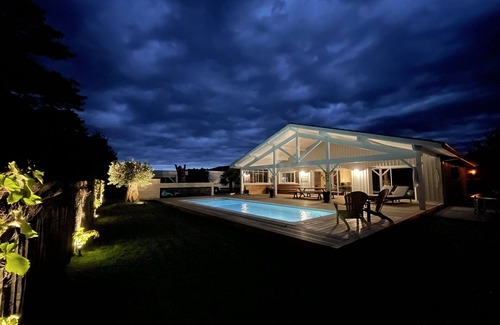 House with swimming pool close to the ocean is located in Le Porge. House with swimming pool close to the ocean provides accommodation, featuring Sports/Activities, Bedding/Linens, Internet, among other amenities. This House features Sports/Activities, Bedding/Linens, Internet, to make your stay a comfortable one.