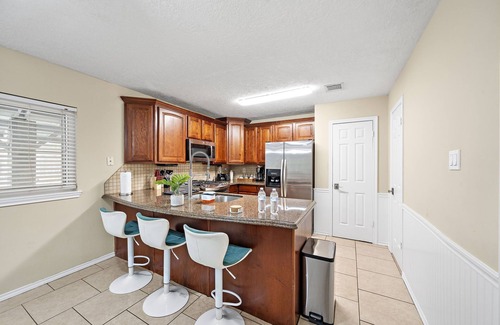 This home resides in a peaceful neighborhood. Should you need anything during your stay, with just a 3 to 5-minute drive, you'll find plenty of practical amenities such as supermarkets, gas stations, restaurants, gyms, and retail stores, for a more convenient stay.