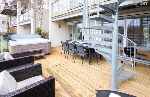 Sleeping up to 8(+2) in 5x bedrooms & 4x bathrooms. 3x double ensuite, 2x twins (1x can be a double) & outside decking area, seating BBQ & hot tub. High ceiling, open plan living area leads to covered balcony area. Pets welcome.