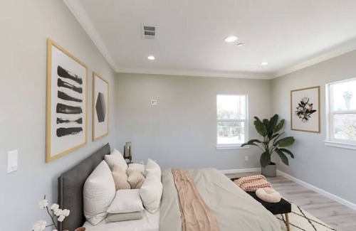 6 bedroom 4 bathroom. Great area. Walking trails quiet neighborhood. Smart home. Fire pit and projector in backyard for amazing family nights. Each room is very spacious. Garage made into extra hangout area. With pool table darts and more