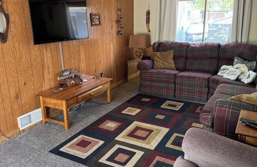 The Idle Hour cabin is a year round rental, fully furnished and outfitted for convenience and comfort. The cabin sleeps 4 with 2 bedrooms. It does have a sectional couch in the living room for sleeping also. You will enjoy the fully furnished kitchen with microwave, stove, and refrigerator with icemaker. The lower level is a fully screened in gathering room with a wet bar and a full size refrigerator. The half bathroom on the lower level includes a washer and dryer for your convenience. The Idle hour has front and rear decks, with a charcoal grill, and a campfire pit. Located 12 miles south of Prairie du Chien, WI the Idle Hour is 1 block from the general store and 2 blocks from the boat landing the River of Lakes Resort. ( Come fish the mighty Mississippi or take advantage of the variety of outdoor and water recreational opportunities. The Idle Hour has something for everyone.