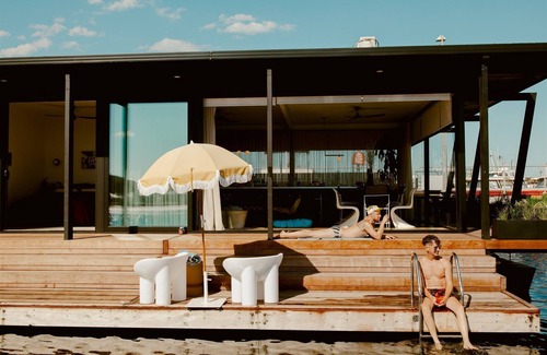 A retro Californian inspired floating accommodation for guests who crave the unseen. Located on the absolute waterfront of the Gippsland Lakes, Victoria in Australia’s idyllic Far South East. Idle Lake House is a tribute to its relatively untouched location, with connection to its local environment, proximity to the locals and saltwater culture.