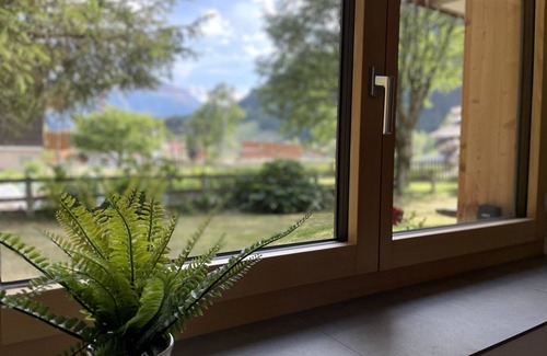 The bright 3-room apartment features an open living kitchen with modern amenities, including an induction stove, oven with microwave function, dishwasher, coffee machine, kettle, toaster and fondue burner. The living area includes a sofa, dining table for four and a television. The master bedroom has a comfortable double bed (1.60 m) with plenty of storage space, while the second bedroom offers a flexible bed for one to two children. A children's bed and high chair are available upon request. The bathroom is equipped with a shower, hairdryer and towels. A separate storage room allows for the secure storage of sports equipment. The garden seating area provides additional space to relax.