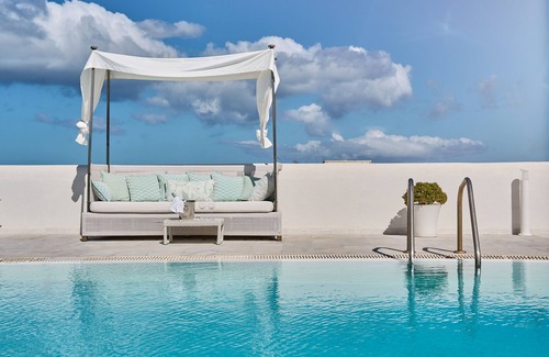 Maybe it’s the dreamy seaside setting, or perhaps it’s the cool exquisite interiors that exude a certain ethereal elegance and calm, that will make you wish your holiday could last forever and a day. Recline in the outdoor pool and watch the sky 'fall' as the clouds settle upon tranquil Santorini waters.
