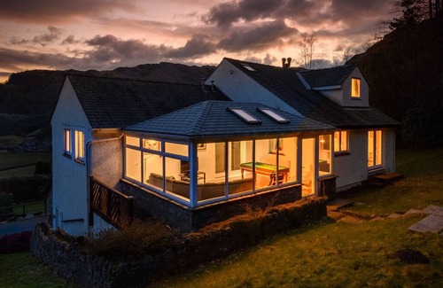 In a beautiful setting on the side of the fell, Spedding Fold is a very special place to enjoy a holiday in the Lakes with family or friends. Its facilities include a pool table and table tennis table with storage for bikes and canoes in the garage. Ambleside and Grasmere are just a short drive away but there are many walks to enjoy from the property with the garden and patio providing the perfect place to return to after a busy day. Size: Sleeps 10, 5 bedrooms Nearest amenities: Less than 1 mile Pets:3 Pets allowed at an additional cost Short breaks: Available at this property Smoking: No smoking at this property Rooms: 5 bedrooms, 3 bathrooms, 4 wc's, lounge, dining room, kitchen, conservatory Beds: 3 double beds, 4 single beds Luxuries: Games room General: Central heating, open fire, 3 TV's Utilities: 2 ovens and hobs, fridge, freezer, dishwasher, washine machine, tumble dryer Standard: Kettle, toaster, iron Other: Bed linen and towels provided, WiFi Outdoors: Garden, patio Parking: Parking on driveway for 4 cars You may need to pay an Accidental Damage Deposit or Accidental Damage Deposit Waiver for this property. Where applicable we will contact you in good time before your holiday with further details and to take payment. Please note: Hen/Stag parties are not permitted at this property