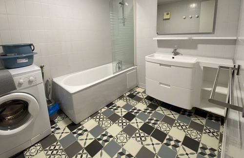 As you settle into this 2-bedroom, 1-bathroom rental, you'll find a dining area and a BBQ grill. The kitchen is equipped with an oven, a stovetop, and a refrigerator, as well as a coffee maker, an electric kettle, and a microwave. And because there's a washing machine, you can go a bit lighter on your packing.