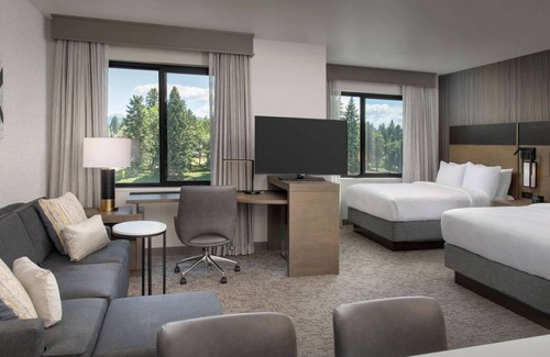 Our pet-friendly hotel offers cozy rooms with a full kitchen, dining area, complimentary WIFI, and flat-screen TV with access to streaming services. Start your day with our free full American and hot breakfast plus a cup of coffee or tea. Relax at the indoor swimming pool & whirlpool, or don't miss your workout routine with our fitness center open 24/7. Self-parking is obtainable onsite. Our friendly and accommodating staff are available to attend to your needs.