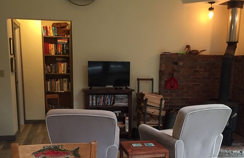 Cute little 600 square foot 1920 cottage completely remodeled in 2016. 3 person maximum occupancy. Porqupine cottage is located 15 miles from the town of Tillamook and the Delicious Tillamook Creamery. The cottage is on 2 acres of meadow and trees with direct access to the Trask River at the back of our meadow. This is a wonderful place to relax, enjoy the cozy woodstove, go fishing, hiking, mountain biking or just stay in and enjoy reading one of the many books provided. Starlink satellite WiFi is provided in the cottage and averages 90-120 mbps. Cell phones connected to Starlink can be used to make and receive calls as there’s no landline phone here. Swimming is great during the summer and 2 float tubes are provided along with beach towels. One bedroom one bath, with a queen bed in the bedroom and a twin sleeper sofa in the living room. The cottage is 3 person maximum occupancy. Kitchen has a small countertop oven/air fryer oven and is equipped with full size refrigerator, microwave, coffee maker, lg 4slice toaster, 2 hot plates, electric griddle and skillet and a crockpot. There is a gas BBQ and dining area on your private deck. Pots and fry pans along with mixing bowls, knives, dishes, utensils, glasses and cups provided. The meadow has a children’s play structure, horse shoe pits , 3 picnic tables and a fire pit area. We supply all the firewood both in the cottage and at the fire pits for your stay along with hotdog roasting sticks. We do live next to the cottage in a converted barn and enjoy meeting guests who want to visit, otherwise you have all the privacy you want. There is room for a vehicle pulling a boat to turn around in the east meadow. We do have a friendly male Newfoundland named Seamas and a female Newfoundland puppy who loves meeting new people and their pet. We do keep them with us when outside. During summer months if you enjoy gardening, I’ll happily loan you gloves, clippers, hoe, trowel or whatever you’d like to work in the garden. Guests are welcome to harvest seasonal veggies and berries from the garden. We allow one pet with a $50 pet fee ( 1 dog, minimum 1 year old non aggressive, healthy, clean, well behaved with short clipped toe nails) owner must provide proof of up to date rabies shots and full canine vaccinations report by sending photos of veterinarian copies through VRBO messenger to host asap when Cottage is booked. The pet requirements are not negotiable and are required if it’s a service dog also. We want our 2 dogs and future guests dogs to stay healthy while at the cottage.