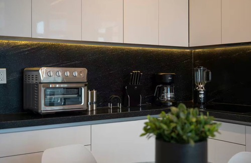 This 1-bedroom, 1-bathroom rental features a BBQ grill and air conditioning. Connect to the WiFi, or get cozy in front of the Smart TV. Bathroom amenities include a hair dryer, towels, and toilet paper. The kitchen is equipped with a refrigerator, as well as a coffee maker, a microwave, and cookware. And because there's a washer and dryer, you can go a bit lighter on your packing. Other amenities include bed sheets and an ironing board.