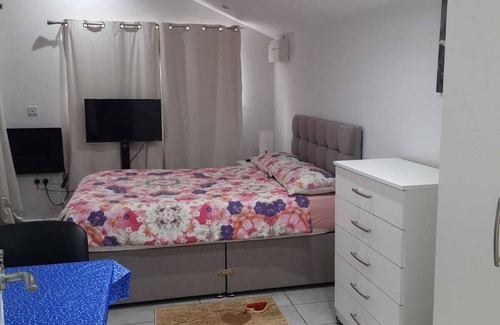 Separate entrance. Ideal for working guests. Fully furnished guest house. One Double and one sofa sofa bed sleeps up to 4. It’s studio type open plan with bedroom space, kitchen and separate bathroom
