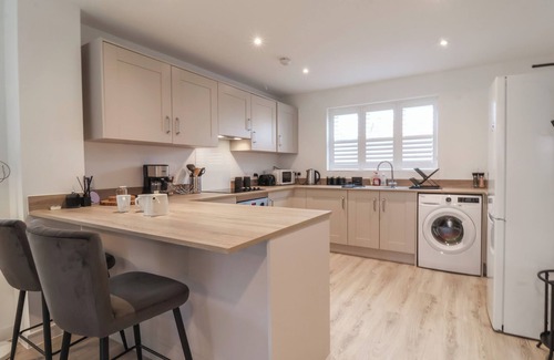 Amenities: Heating provided by air source heat pump. Electric oven with four ring ceramic hob, microwave, fridge/freezer, washing machine. TV with sky TV. WiFi (Fast free fibreoptic WIFI). Bed linen and towels inc. in rent. A travel cot and high chair are available on request. Off-road parking for 2 cars. Garden with patio area with bistro table and chairs. Sorry, no pets or smoking/vaping. Shop 2 miles, pub 0.2 miles. Note: The property is located on a newly built estate where works are still commencing. Note: There are steps into the front of the property and out onto the garden.