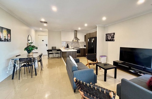 Welcome to "Innaloo Family Oasis · 3BR · 2BA · 2PKG," a beautiful 3-bedroom house just a 7-minute drive from the stunning Scarborough Beach, 2 minutes to Osbourne Park Business Park. This fully equipped house offers everything you need for a relaxing and comfortable stay.