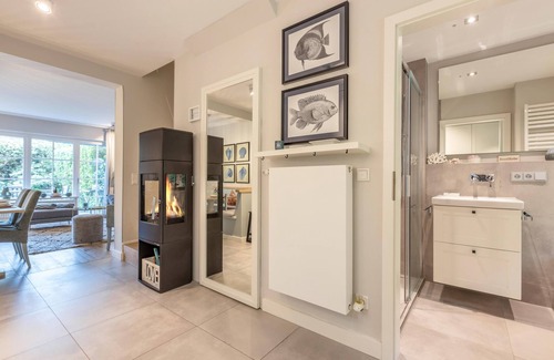 Lovingly selected accessories throughout the vacation home create a cozy atmosphere. State-of-the-art flat-screen TVs with Netflix connection are present in each room. Wi-Fi is available throughout the house. A private parking space is located directly to the left in the driveway.