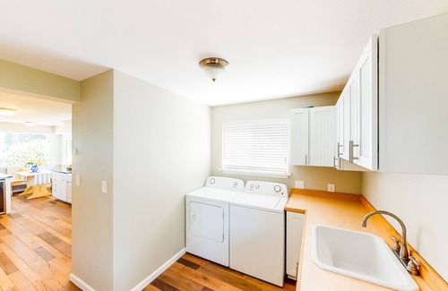Stop searching for that dream getaway, you have found it! This adorable waterfront dwelling is just the place to take the family for an unforgettable vacation to Poulsbo. Offering stunning bay views and beach access from the back deck, guests will have no trouble falling in love with the bay-side lifestyle. Though everyone will enjoy spending time on the water, the interior of this home is just as beautiful. The exposed ceilings, hardwood floors, and stone fireplace give this home a coastal charm that cannot be matched in the area. Plus, the chef of the group will be in paradise the moment they step foot in the kitchen. From the granite countertops to the gas range, they will have everything they need and more to whip up fantastic meals for the whole group. Not to mention, there is an adorable breakfast nook for the little ones to eat at adjacent to the dining area. After full days of swimming, laughter, and sunshine, gathering for a movie in the living area as the fire flickers nearby will be a perfect way to settle down. But don't forget to watch the sunsets from the furnished porch before heading inside, as they are absolutely breathtaking. What are you waiting for? Waterfront Getaway is ready to be your home away from home!
