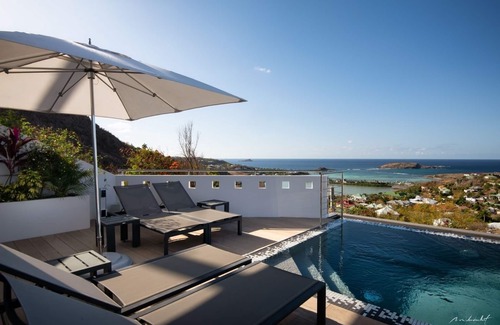 The luxurious rental Villa Iris is located on the heights of Grand-Cul-de-Sac and offers a breathtaking panoramic view over the lagoon, Turtle Island and the ocean. Only a few minutes from the beach, this modern three-bedroom property is the ideal spot for a large family or several couples vacationing in St.Barts.