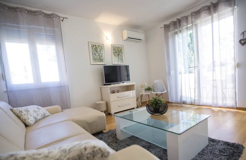 Iris Apartments includes four modern apartments with air conditioning, plasma TV and elegant interior.Apartments are located near the main seafront promenade and beach.All units have a seating and dining area. There is also a kitchen, equipped with a refrigerator and stovetop. All units have a private bathroom with free toiletries in every unit. Apartments are equiped with bed linen and towels. Iris apartments are close to the major cities Split and Trogir.